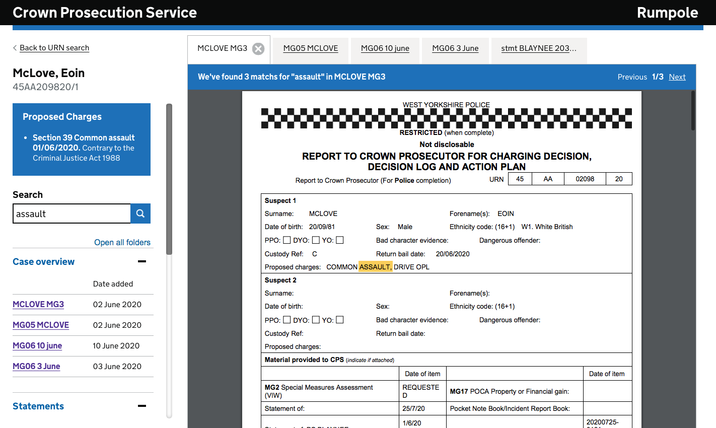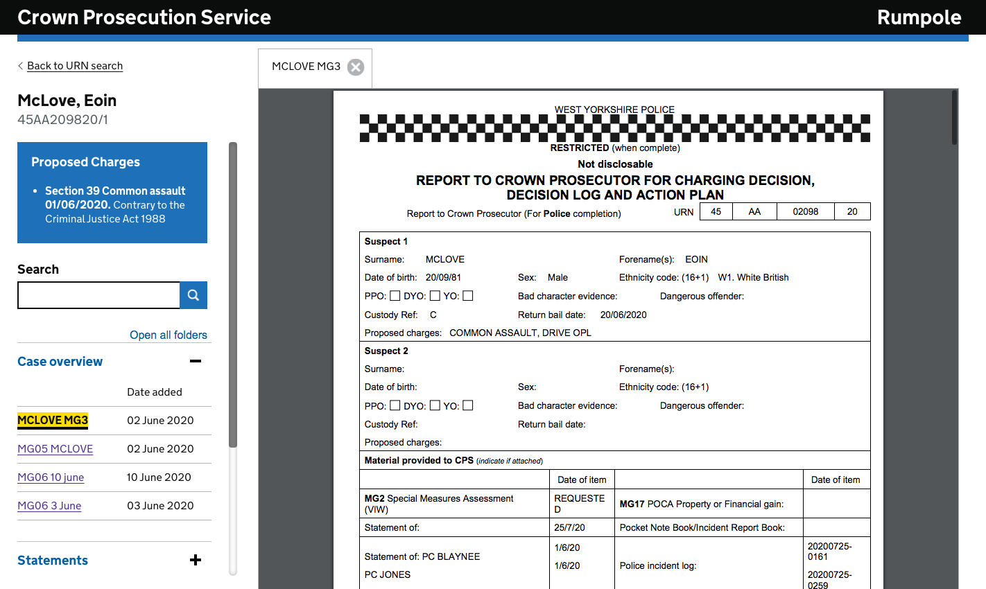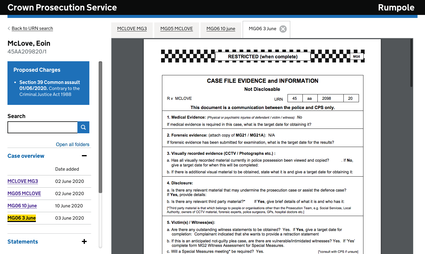 This is the second draft of a journey that starts with searching for a case file URN, allows users to find that case and open all the documents related to that case in a case viewer.