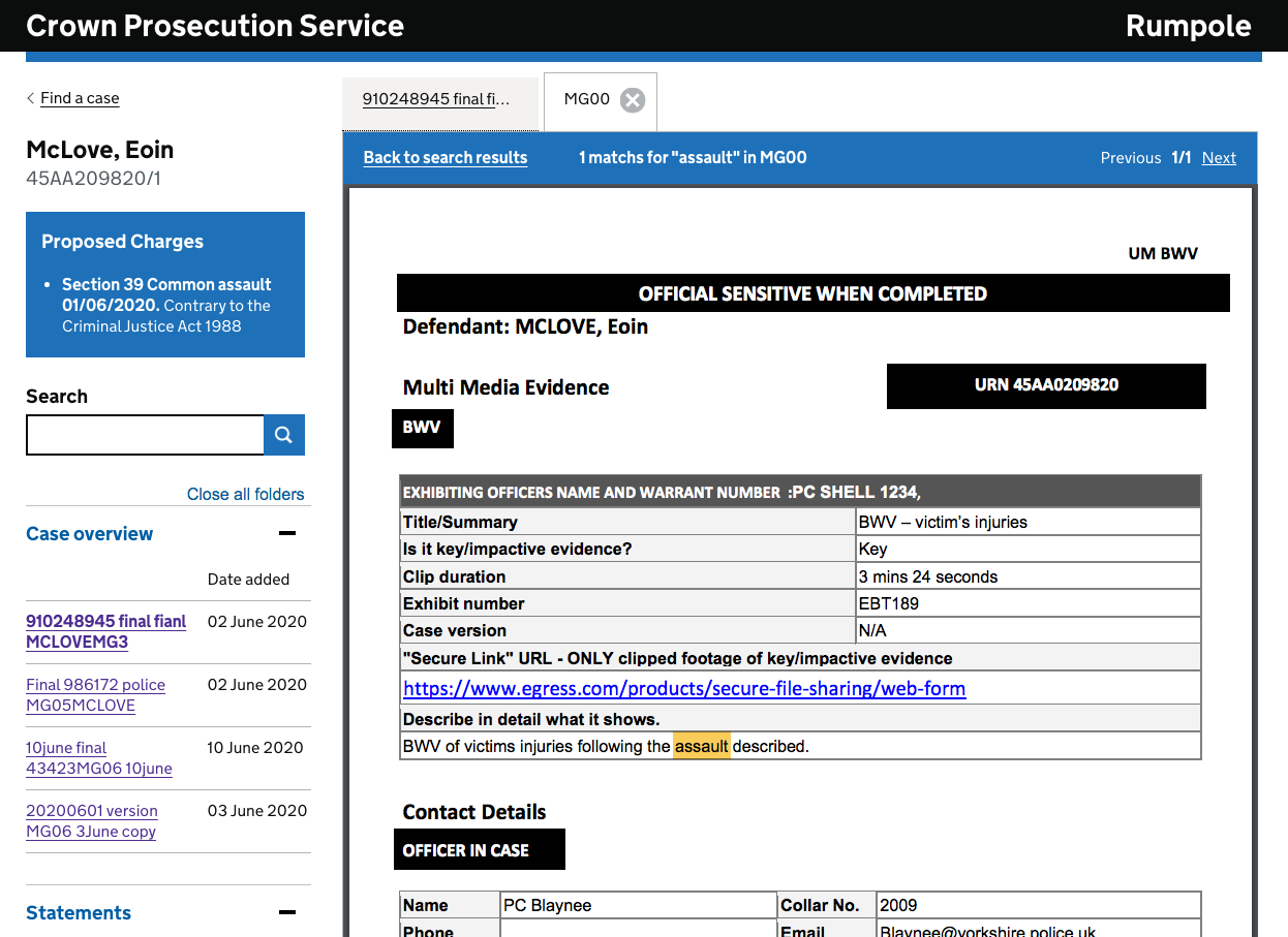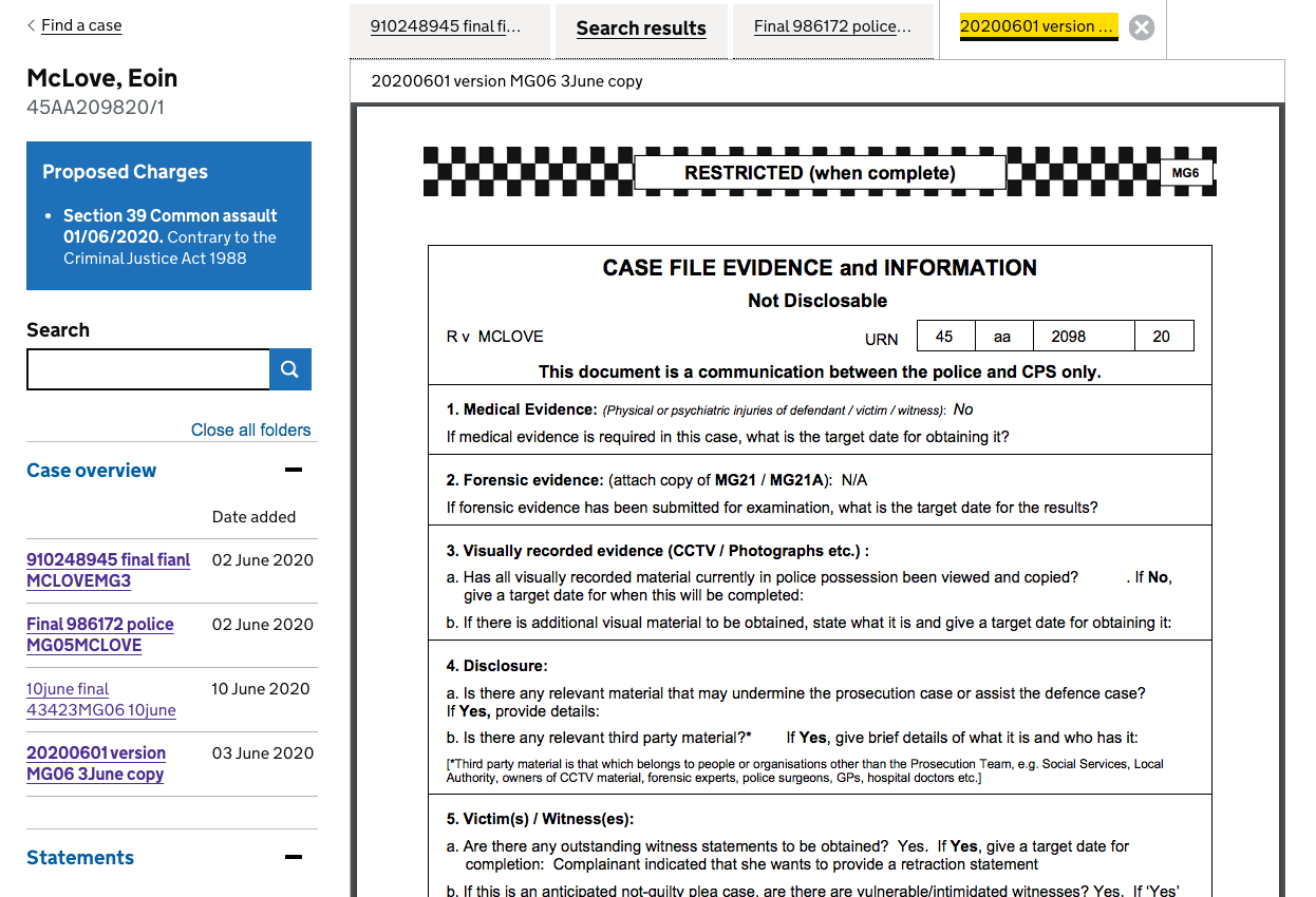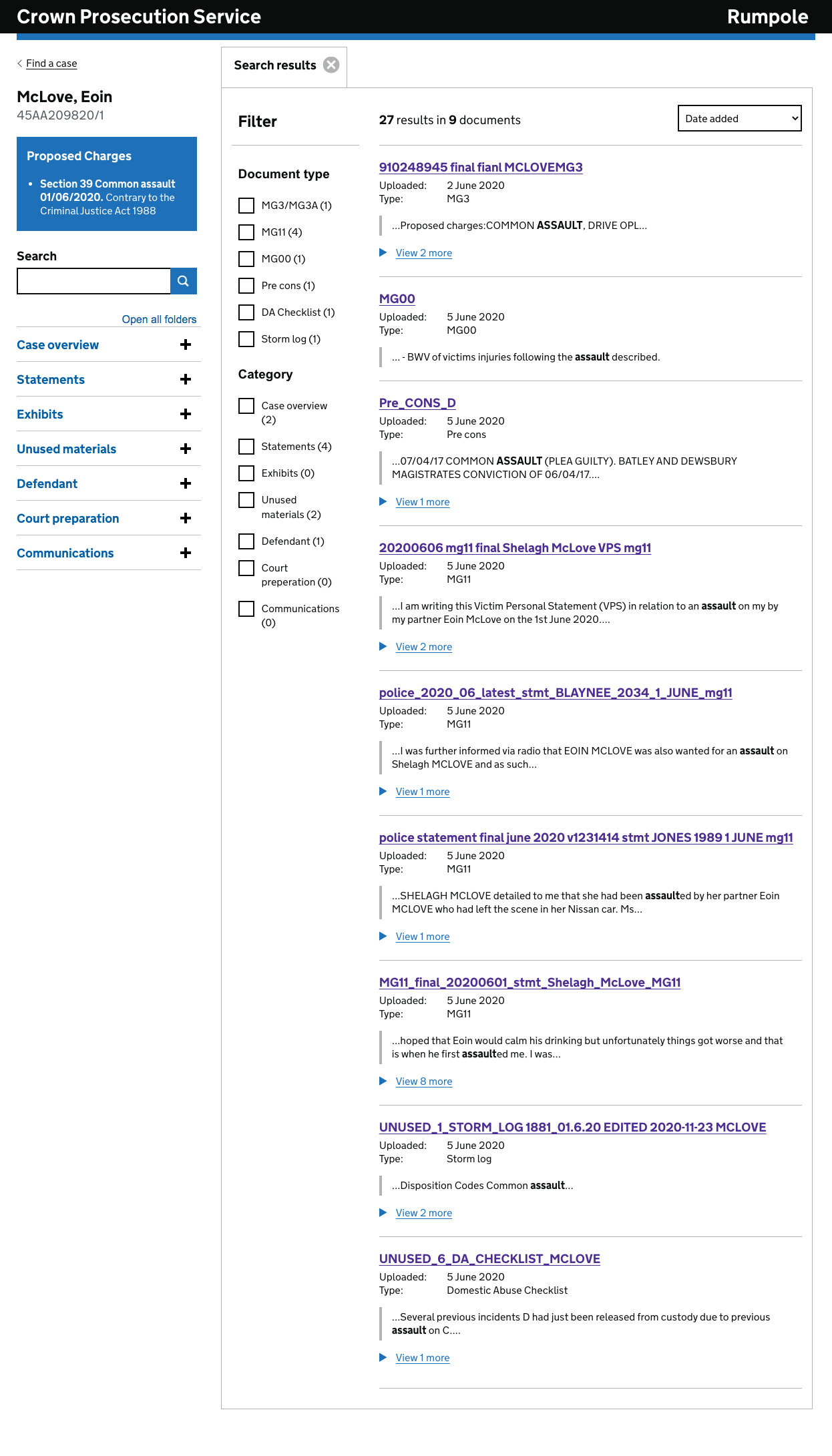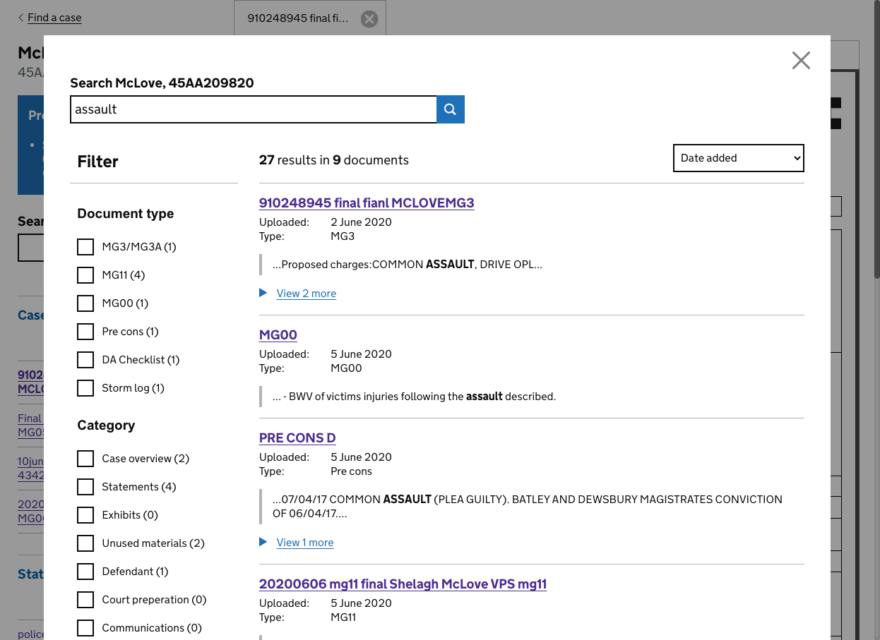 This is the third draft of a journey that starts with searching for a case file URN, allows users to find that case and open all the documents related to that case in a case viewer.