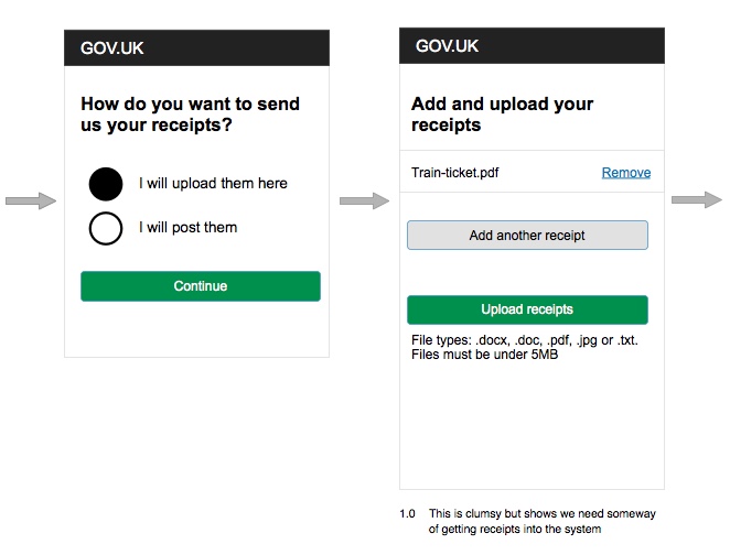 Not really an option as users quite often didn’t know what they could claim for and we couldn’t tell them what receipts they should upload. We were hoping we could identify or mark what the receipts were at the beginning of the journey to simplify the process but it did not work.