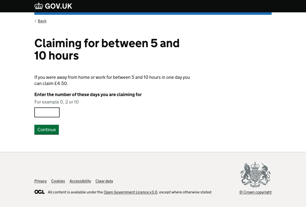 If users spent less than 4 hours away from work they will get upto £33.50 and £67 for a full day. This was to see how many days they had been away for less than 4 hours.