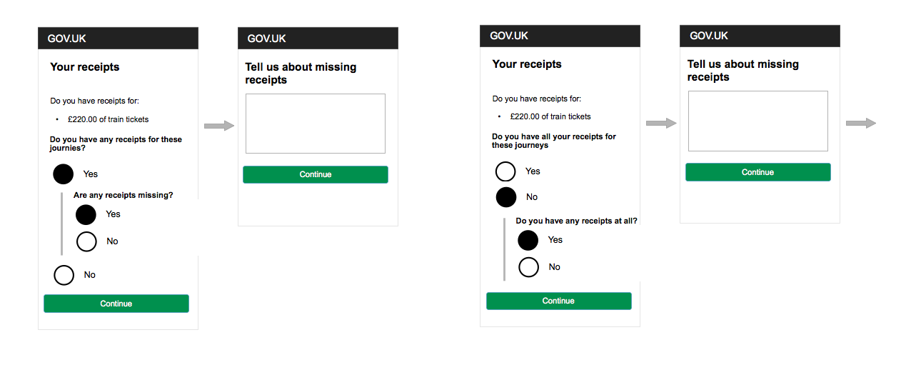 This is a simplified and combined option that we saw earlier, the user will be asked the question about receipts straight after they have been asked the question about amounts.