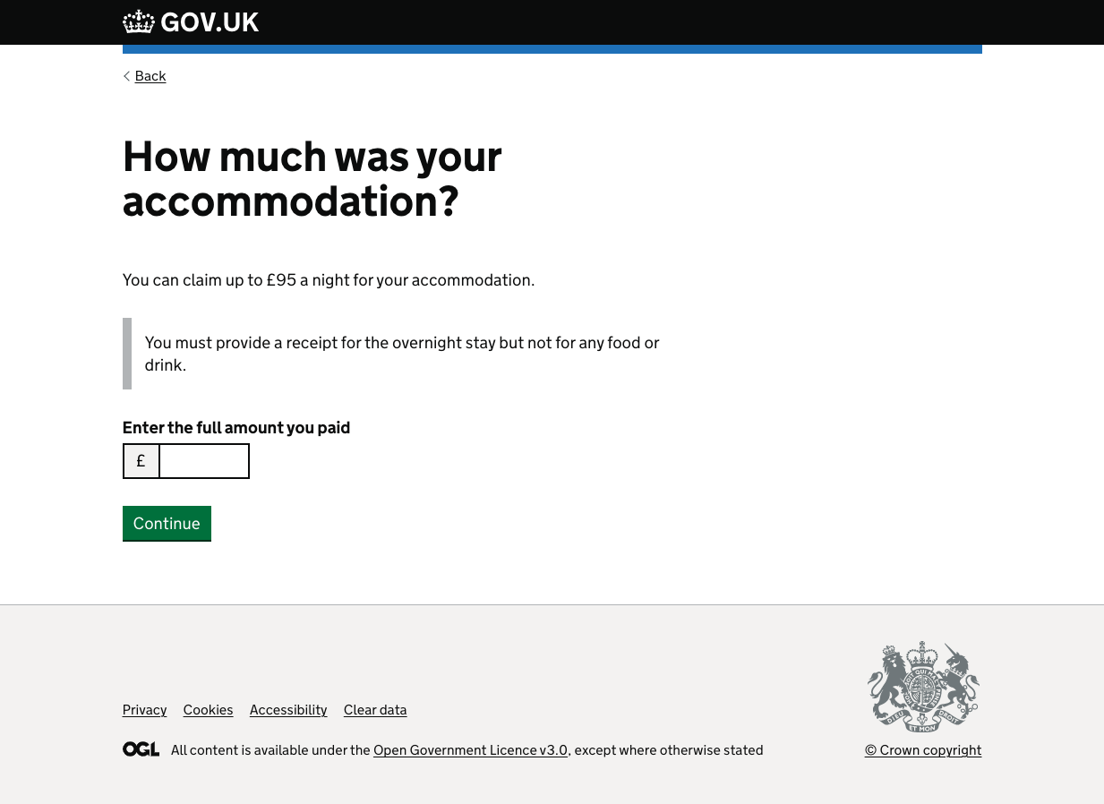 This was tweaked to ask the user to enter the full amount they paid for accomodation.