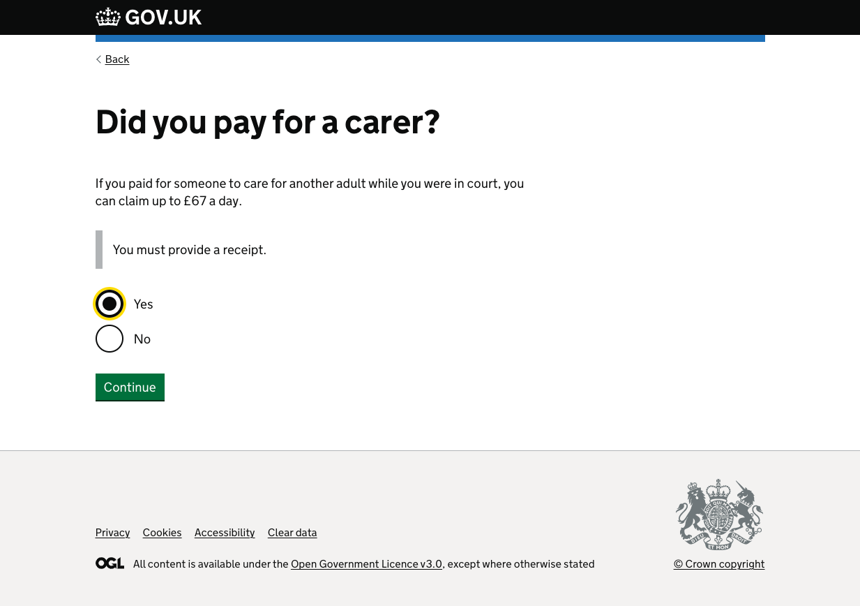 This is a new section, we followed the copy platform for childcare. We did debate if there was an ‘official’ accreditation that a carer could have (similar to Ofsted for childcare) but it doesn’t work in the same way so the policy is just to give a max of £67 to someone who needs to claim for a carer